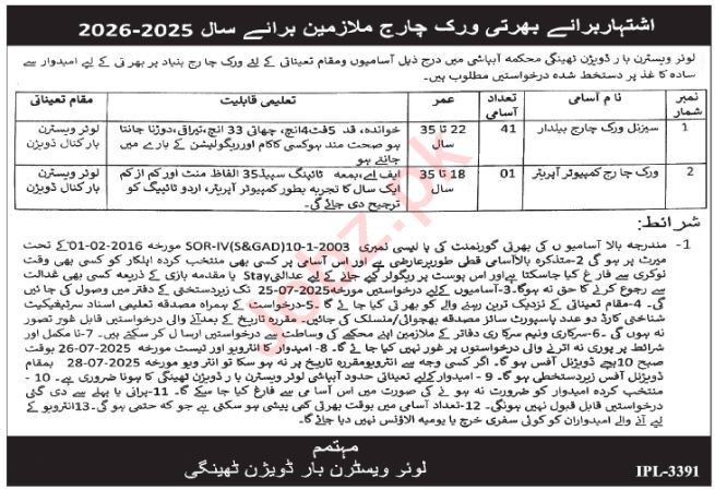 Vacancies in Irrigation Department Advertisement July 2025