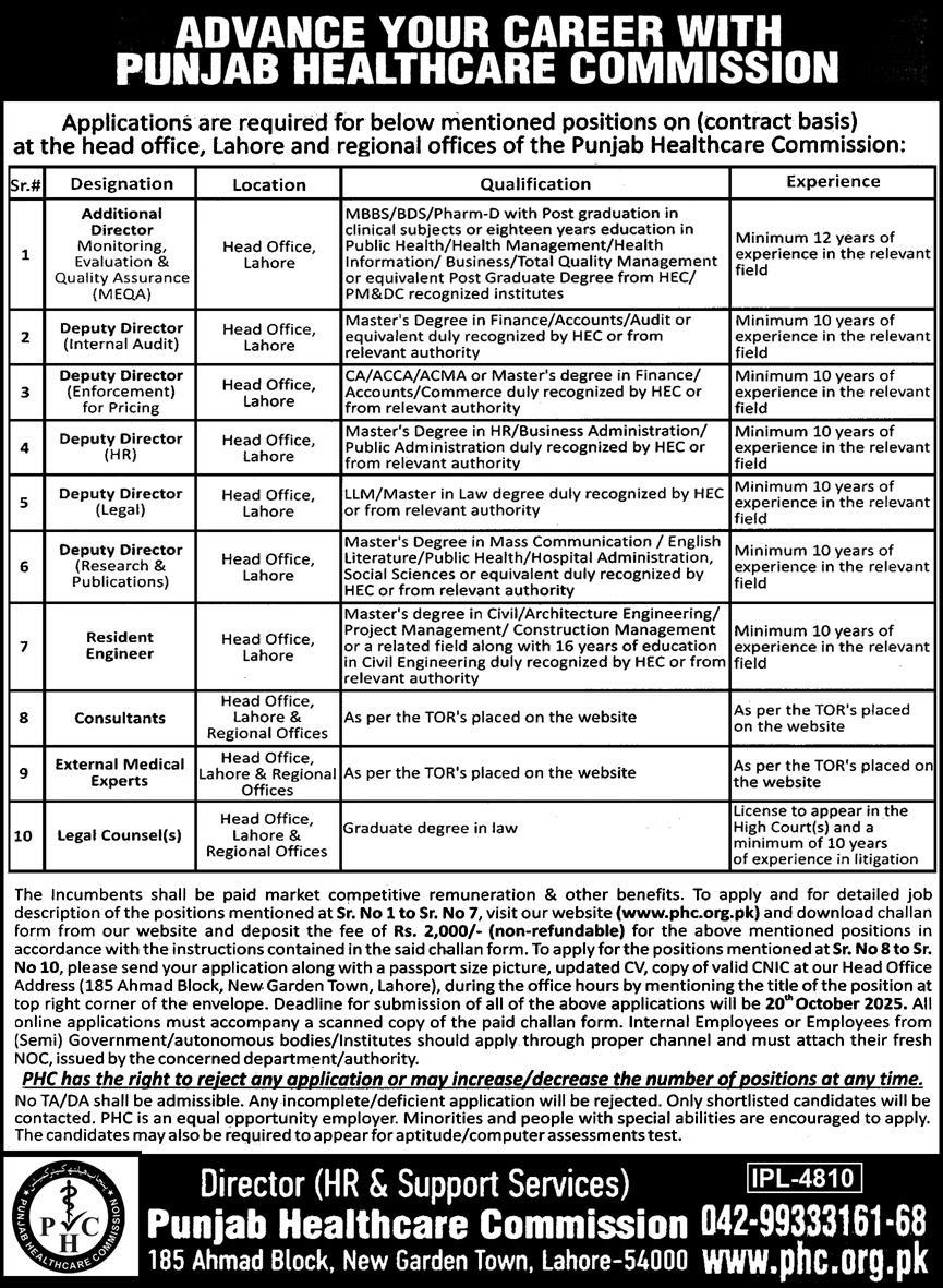 Vacancies in The Punjab Healthcare Commission PHC Advertisement September 2025