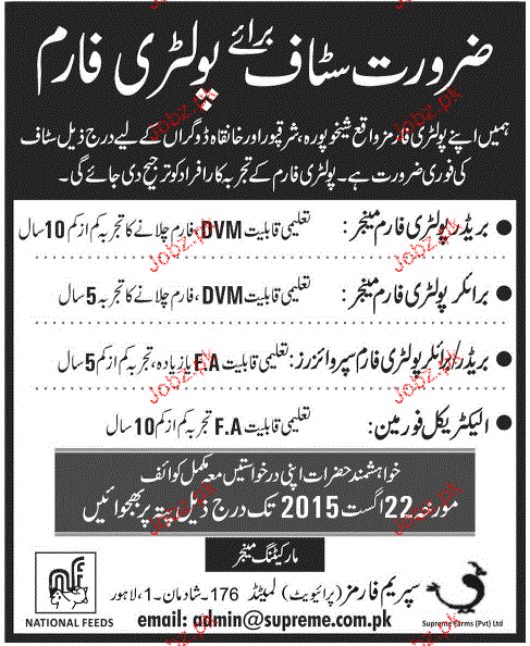 Poultry Form Manager, Electrical Foreman Job Opportunity