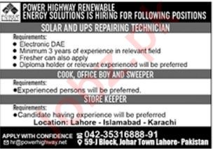 Vacant posts including solar ups repairing technician, office boy, store keeper, cook and sweeper are announced in Power Highway Organization Lahore, lahore Punjab Pakistan as per 2 April 2023 advertisement in daily Jang Newspaper. Candidates with Master and Bachelor etc. educational background will be preferred.