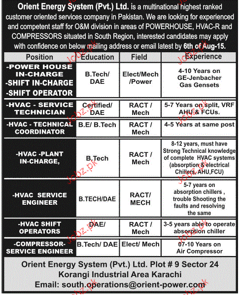 Power House Incharge,HVAC Plant Incharge Job Opportunity