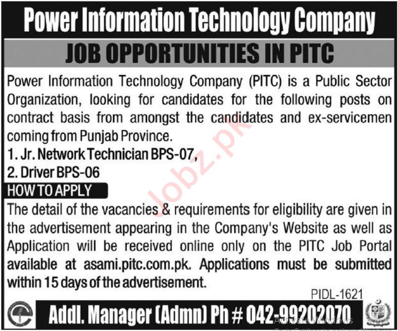 Power Information Technology Company PITC Lahore Job 2022