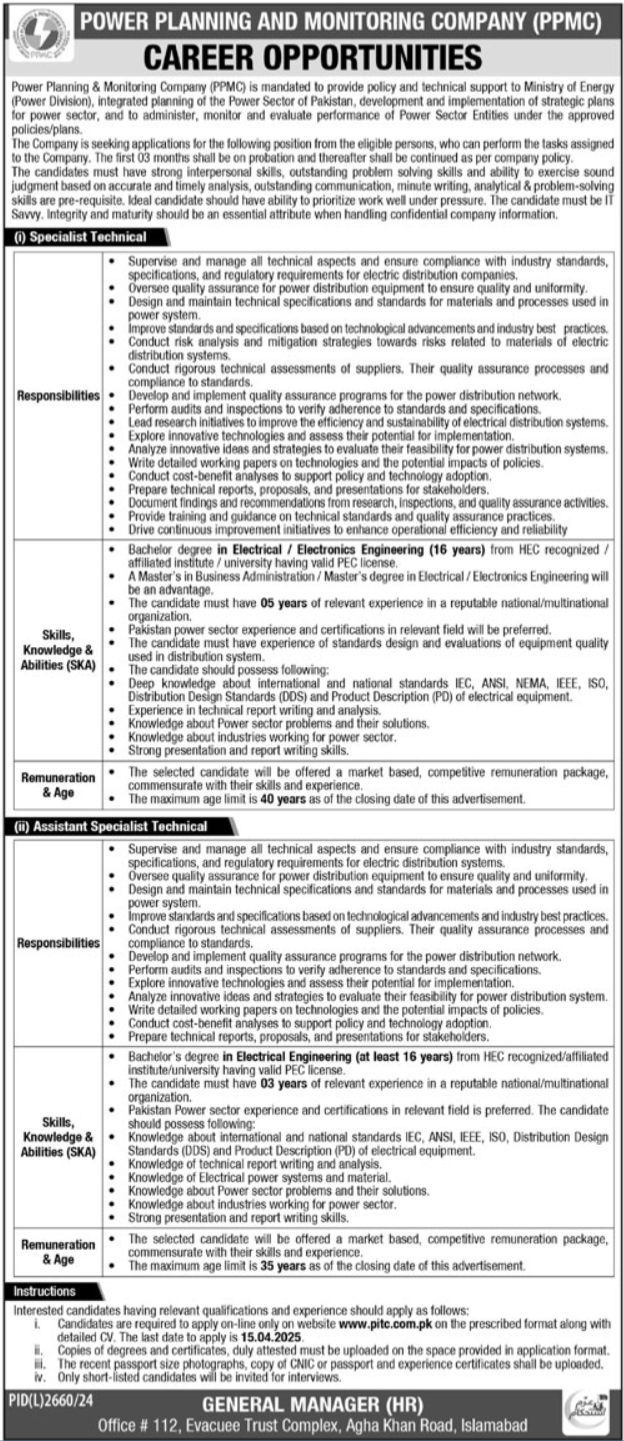 Apply at Power Planning and Monitoring Company latest Government jobs in Management and departments before closing date which is around April 15, 2025 or as per closing date in newspaper ad. Read complete ad online to know how to apply on latest Power Planning and Monitoring Company job opportunities.