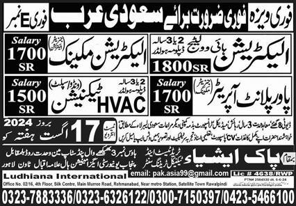 Ludhiana International Overseas Employment Promoters invites applications for job positions advertised in daily Express dated 15 August 2024 for following vacancies in Jeddah, dammam Saudi Arabia.