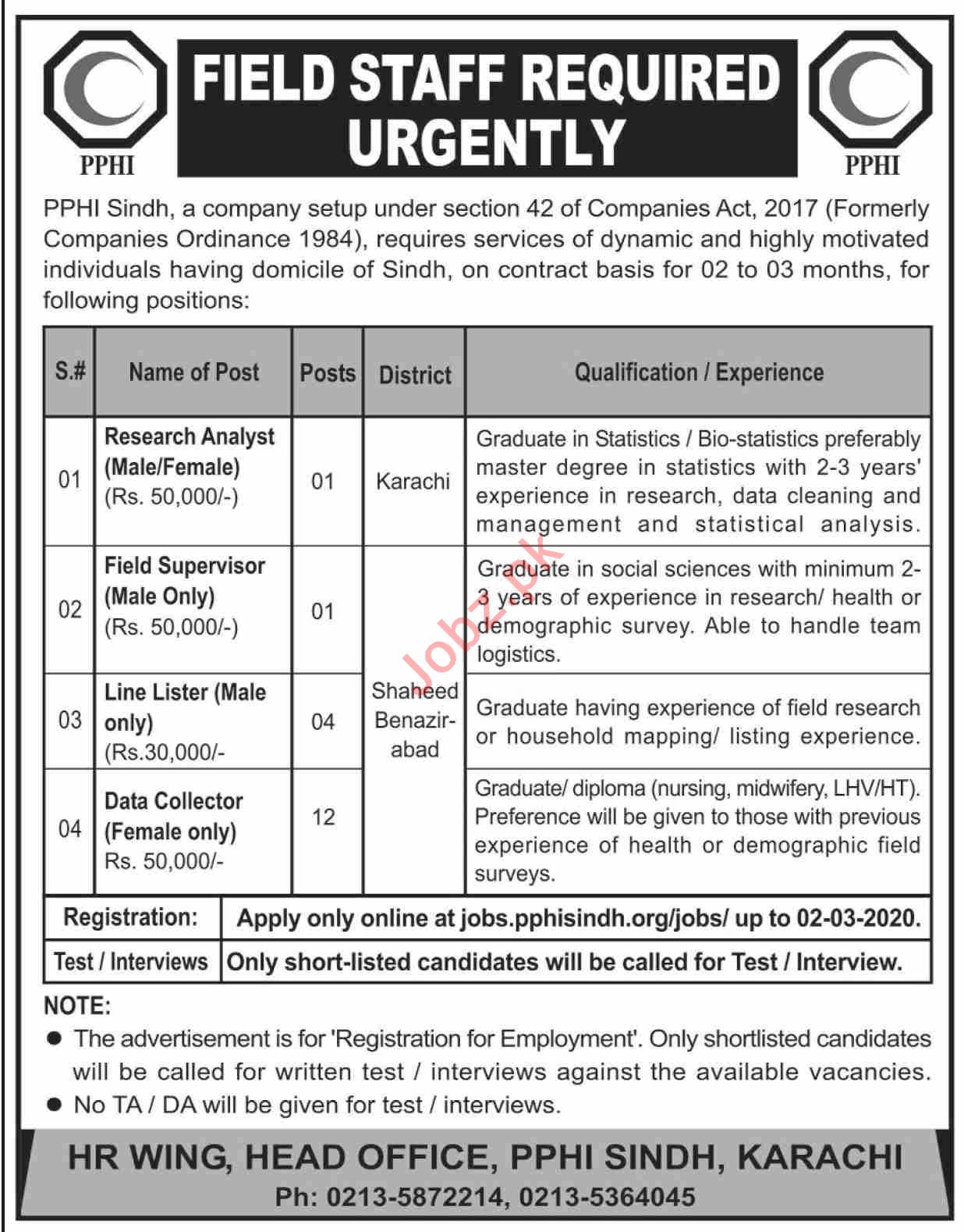 PPHI Sindh Jobs 2020 For Research Analyst & Field Supervisor