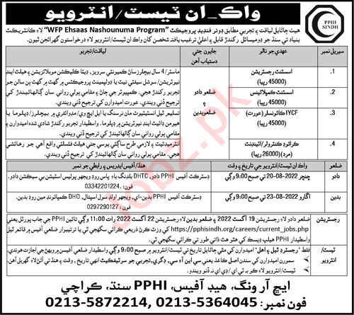 PPHI Sindh is looking for candidates for following posts as per job advertisement published in daily Kawish Newspaper of August 17, 2022 for location Karachi, badin and dadu Sindh Pakistan: