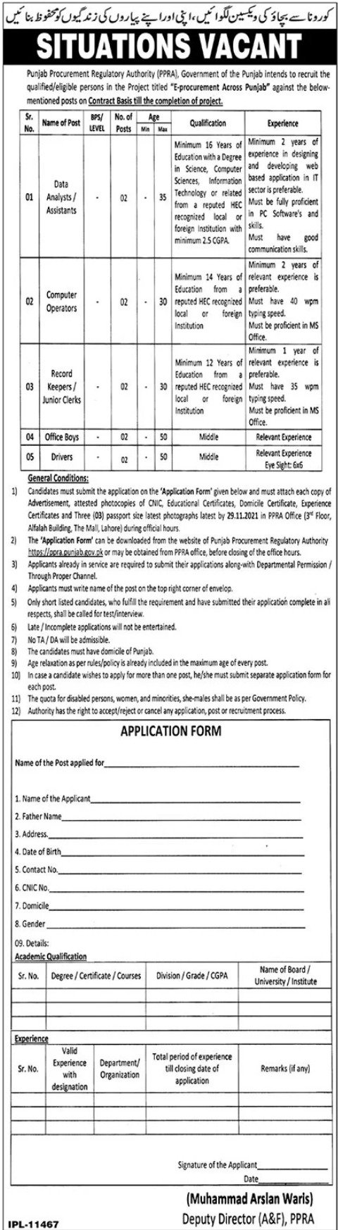 Latest Public Procurement Regulatory Authority Management Posts Lahore 2025