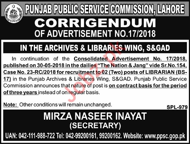 PPSC Archives & Libraries Wing S&GAD Jobs 2018