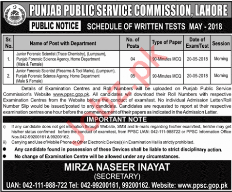 PPSC Schedule Of Written Test May 2018