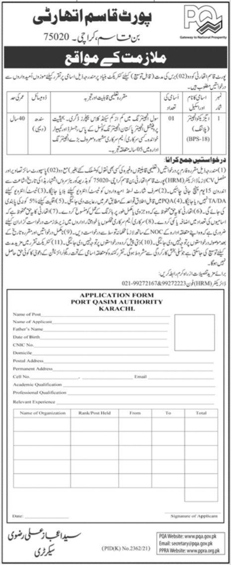 Latest Port Qasim Authority PQA Engineering Posts Karachi 2025