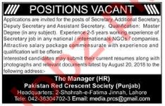 Latest Pakistan Red Crescent Society PRCS Secretarial Posts Lahore 2025