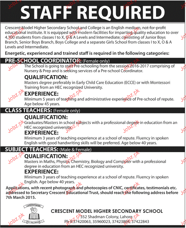 Apply as per details in job advertisement. Login to view further details of how to apply via https://www.jobz.pk online.