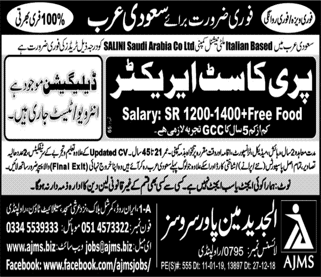 Vacancies in Al Jadid ManPower Services Advertisement February 2019