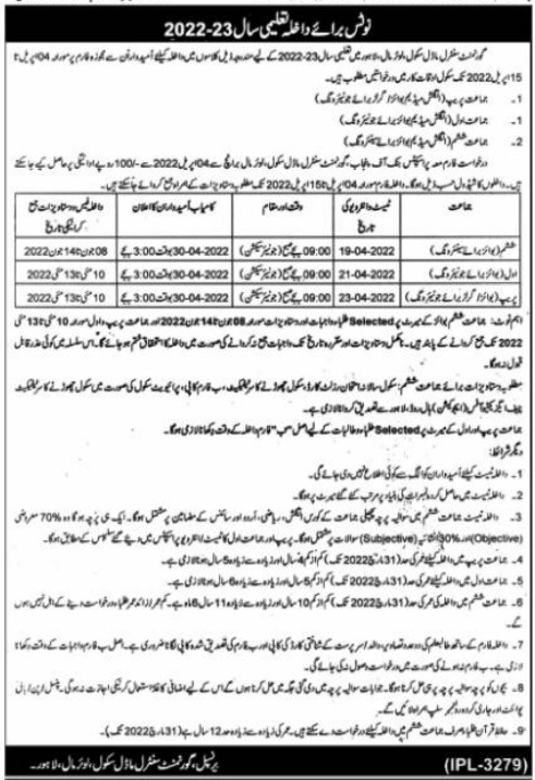 Admissions in Government Central Model School 2022 for Prep Class, Class 1, Class 6 has been announced. Government Central Model School Lahore Punjab Pakistan welcomes students to apply for admissions in academic year 2022 in Science School. Students who want to enroll for academic session 2022 in Primary and Middle qualification and admission criteria for Government institute can apply till last date 13 May 2022. Read newspaper ad for exact details.