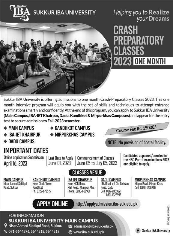 Preparatory Classes admissions at Sukkur IBA University