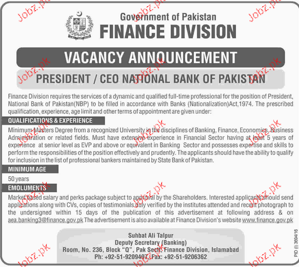 Apply as per details in job advertisement. Login to view further details of how to apply via https://www.jobz.pk online.
