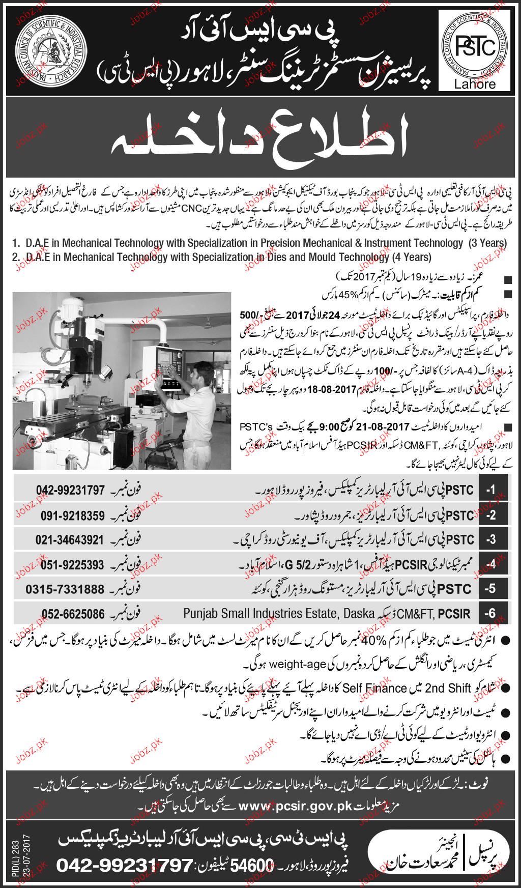 Presron Systems Training Center Admission in DAE in Lahore. Read newspaper ad for exact details.