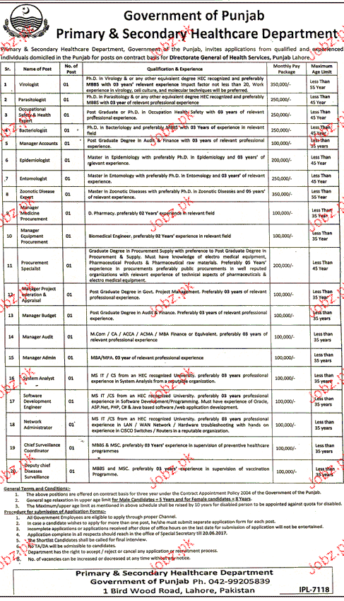 Apply as per details in job advertisement. Login to view further details of how to apply via https://www.jobz.pk online.