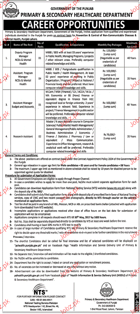 Primary And Secondary Healthcare Department Jobs Through NTS