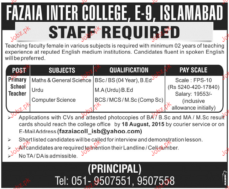 Apply as per details in job advertisement. Login to view further details of how to apply via https://www.jobz.pk online.