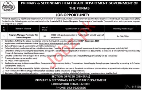 Latest Primary & Secondary Healthcare Department Medical Posts Lahore 2025