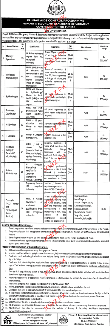 Latest Govt of the Punjab Department of Primary & Secondary Healthcare Management Posts Lahore 2025