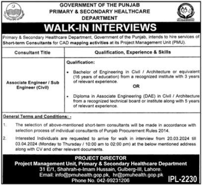 Latest Primary & Secondary Healthcare Department Management Posts Lahore 2025