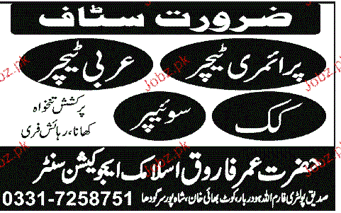 Primary Teachers, Arabic Teachers, Cook And Sweeper Wanted