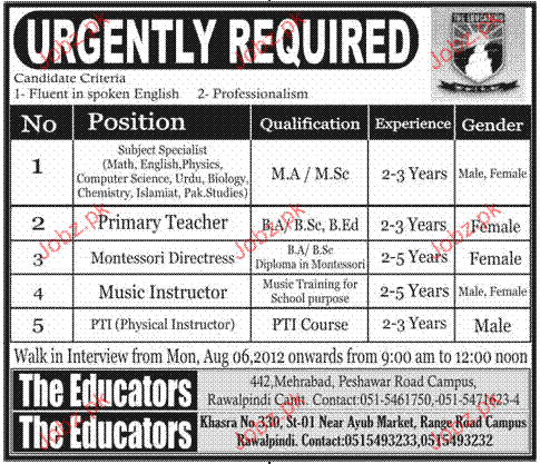 Latest Private Company Teaching Posts Rawalpindi 2025