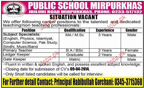 Latest Private Company Teaching Posts Mirpur Khas 2025