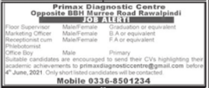 Latest Primax Diagnostic Centre Management Posts Rawalpindi 2025