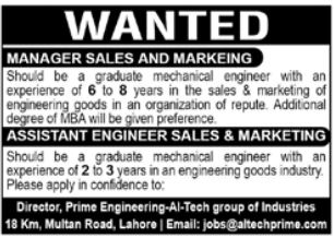 Prime Engineering Pvt Limited invites applications for job positions advertised in daily Jang dated 3 February 2025 for following vacancies in Lahore, lahore Punjab Pakistan.
