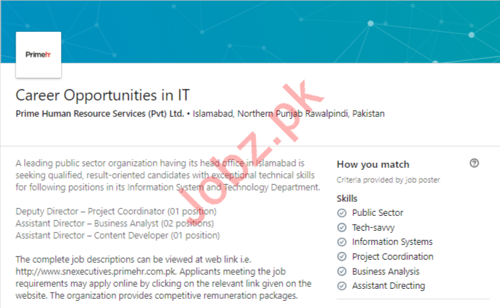 Latest Prime Human Resource Development Pvt Ltd IT Posts Islamabad 2025