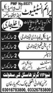 Prime Institute Paramedical and Health Sciences Medical Laboratory Technology 2 Years, Operation Theatre Technology 2 Years, Dispenser 2 Years, Assistant Pharmacist for Medical License 2 Years Course. admissions 2022 has been announced. Students can enroll for admissions in Prime Institute Paramedical and Health Sciences Rahim Yar Khan Punjab Pakistan for academic year 2022 to continue campus based or online education in Medical Course. Eligible students for fulfilling criteria for admissions in Course can enroll as per Private admission policy 2022 till closing date 30 September 2022. Read newspaper ad for exact details.