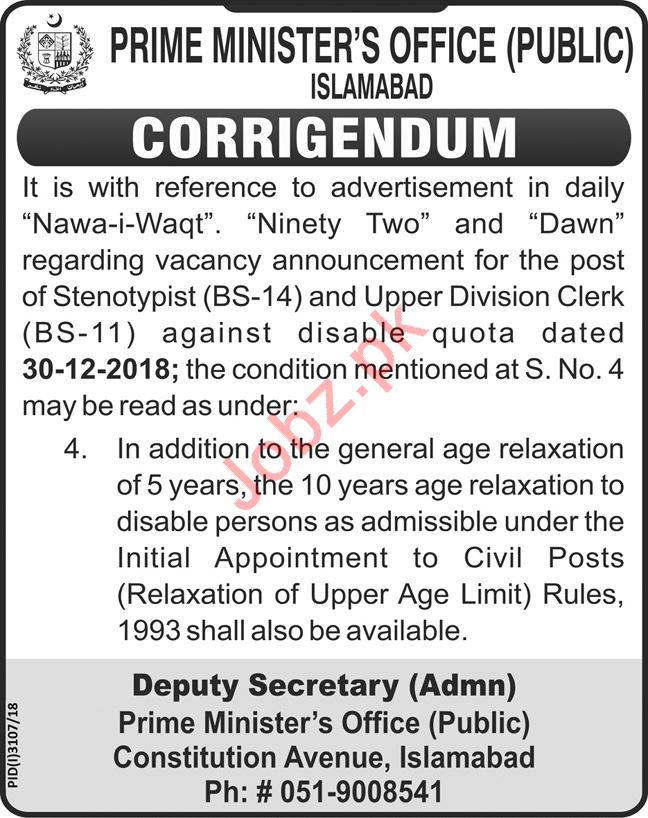 Prime Minister Office Public Islamabad Jobs 2019