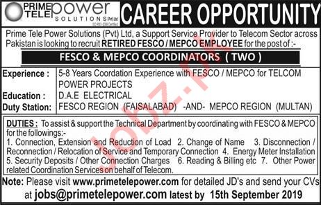 Vacancies in Prime Tele Power Solutions Advertisement August 2019