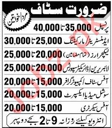 Apply as per details in job advertisement. Login to view further details of how to apply via https://www.jobz.pk online.