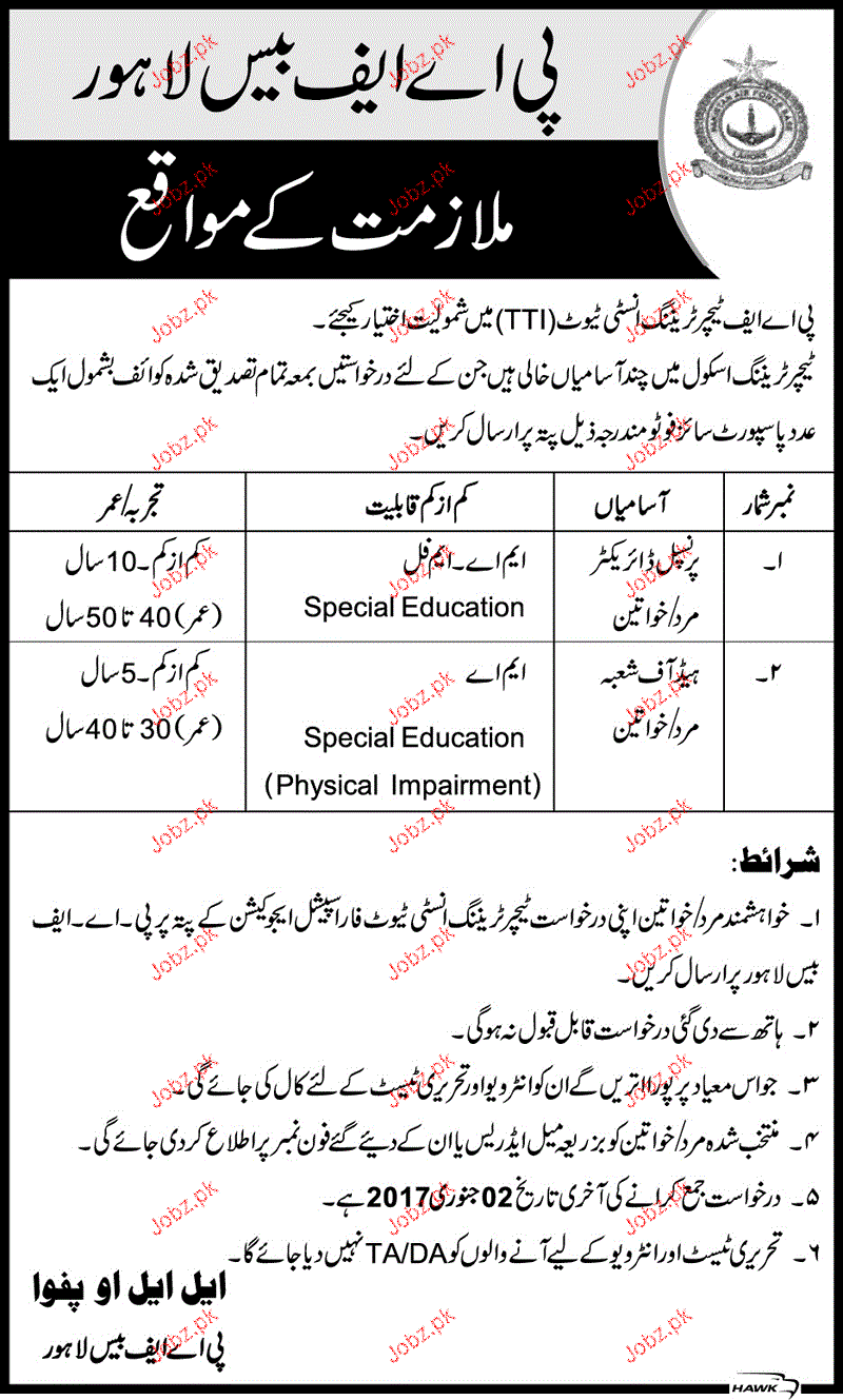 Principal And Head Of Department Job In PAF Base Lahore