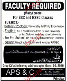 Latest Army Public School APS Teaching Posts Rawalpindi 2025