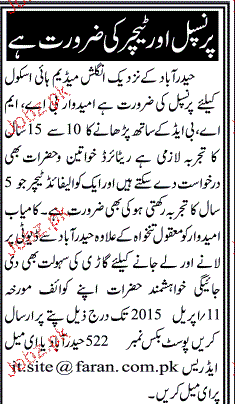 Principal And Teachers Job Opportunity