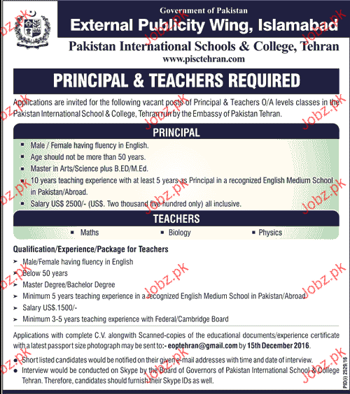 Apply as per details in job advertisement. Login to view further details of how to apply via https://www.jobz.pk online.