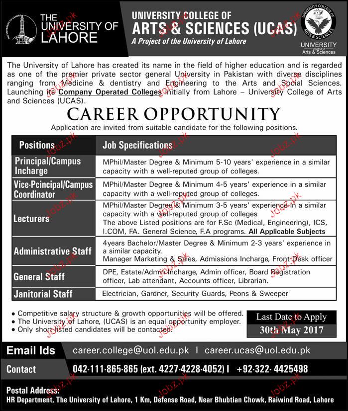 Principal / Campus Incharge, Vice Principal Job In UOL