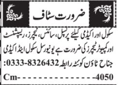 Educational qualifications required Intermediate, Bachelor, BA, MA, Matric, M.sc and M.ed etc.