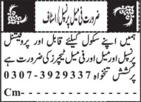 Private School jobs advertisement dated about 27 February 2025 in daily Jang Newspaper invites application for the vacant post of female teacher, principal and teacher in Quetta, quetta Balochistan Pakistan. Educational qualifications required Master and Bachelor etc.