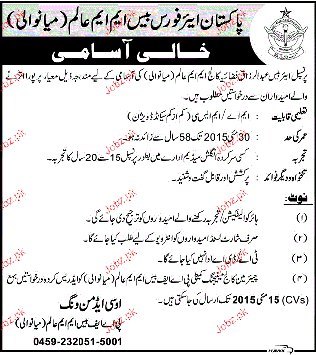 Principal Job In Abdur Razzaq Fazaia Inter College