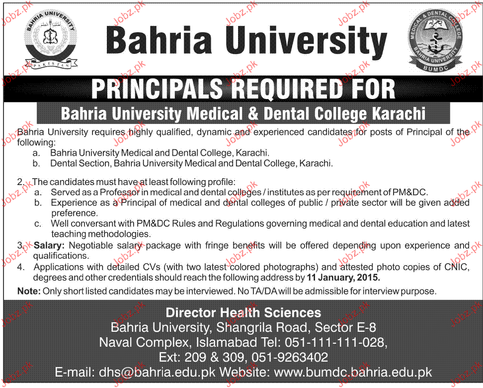 Principal Job In Bahria University