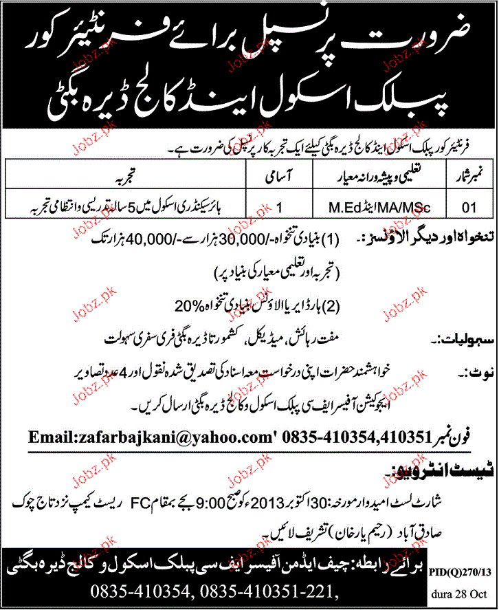 Apply as per details in job advertisement. Login to view further details of how to apply via https://www.jobz.pk online.