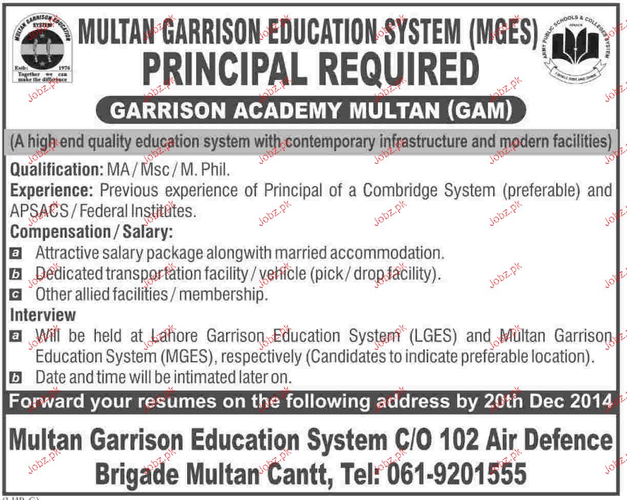 Apply as per details in job advertisement. Login to view further details of how to apply via https://www.jobz.pk online.