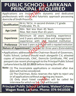 Principal Job In Public School Larkana