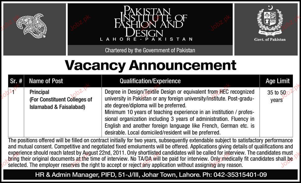 Apply as per details in job advertisement. Login to view further details of how to apply via https://www.jobz.pk online.